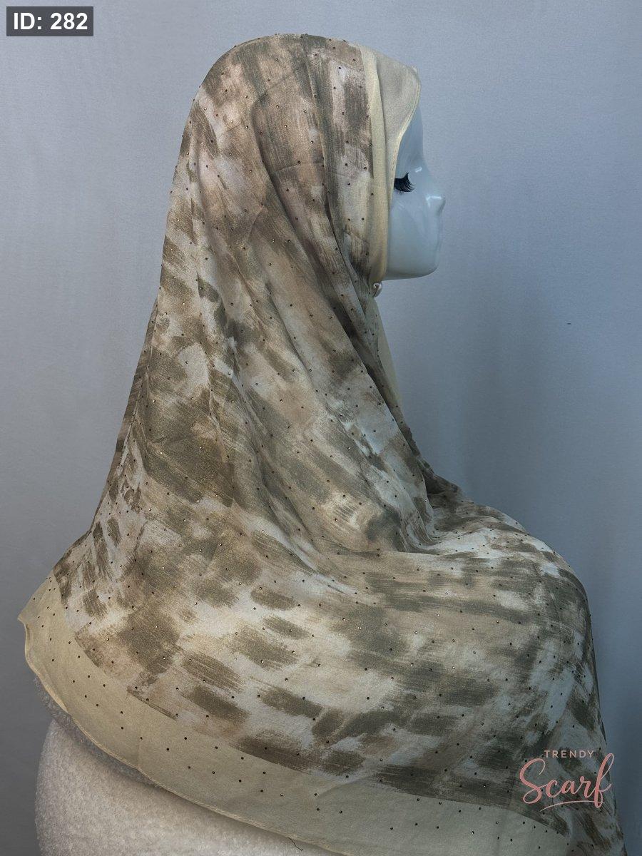شال نصفين نصف شيفون سادة ونص لامع مع خرز