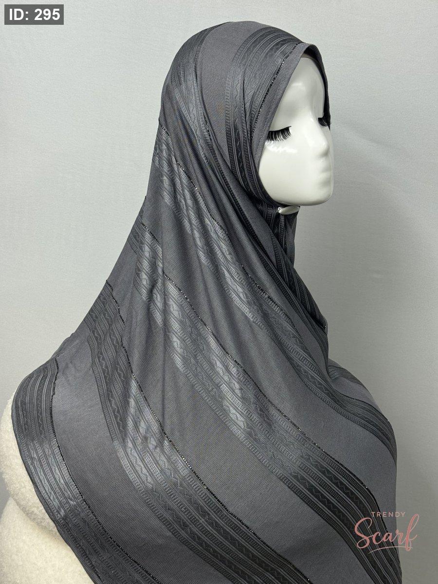 شال نصفين نصف شيفون سادة ونص لامع مع خرز