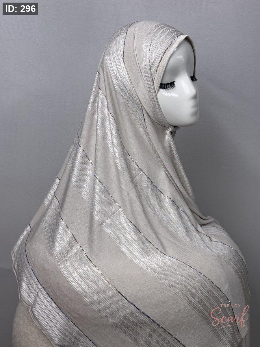 شال نصفين نصف شيفون سادة ونص لامع مع خرز