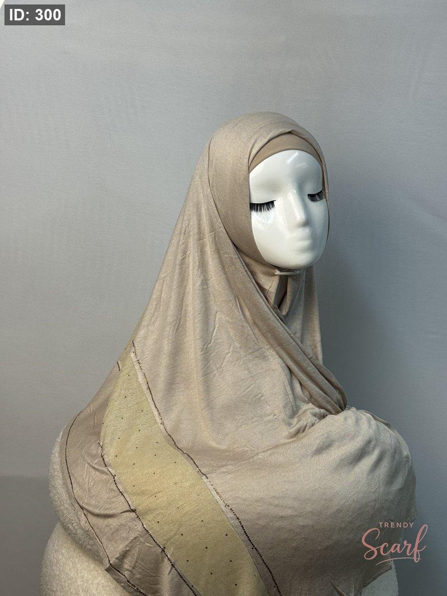 شال نصفين نصف شيفون سادة ونص لامع مع خرز