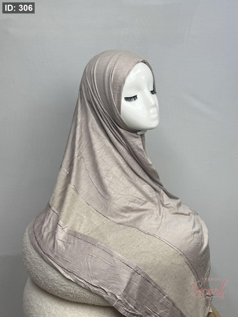 شال نصفين نصف شيفون سادة ونص لامع مع خرز