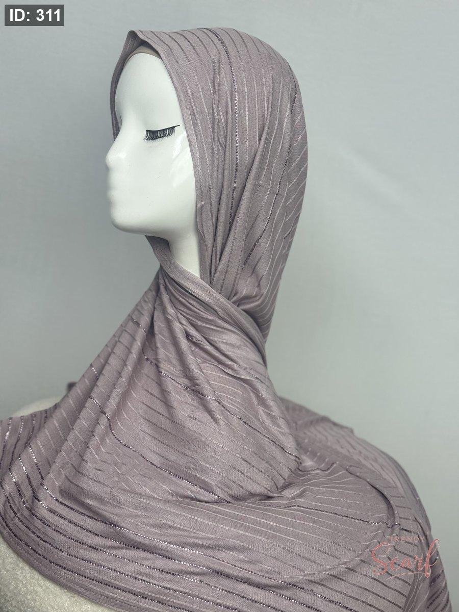 شال نصفين نصف شيفون سادة ونص لامع مع خرز