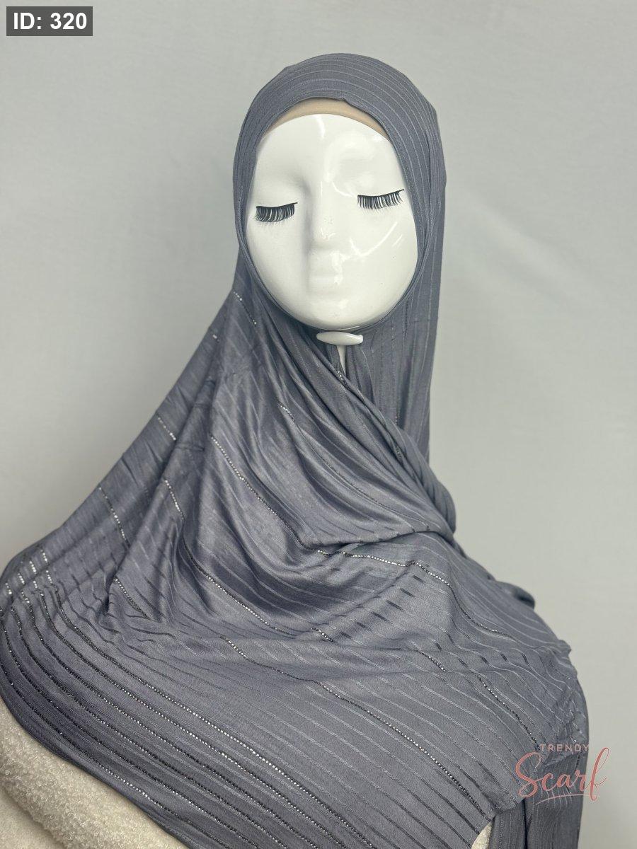شال نصفين نصف شيفون سادة ونص لامع مع خرز