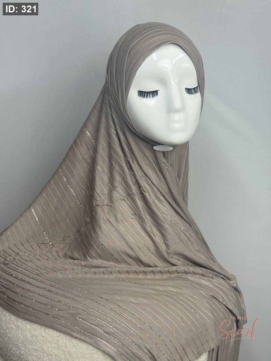 شال نصفين نصف شيفون سادة ونص لامع مع خرز