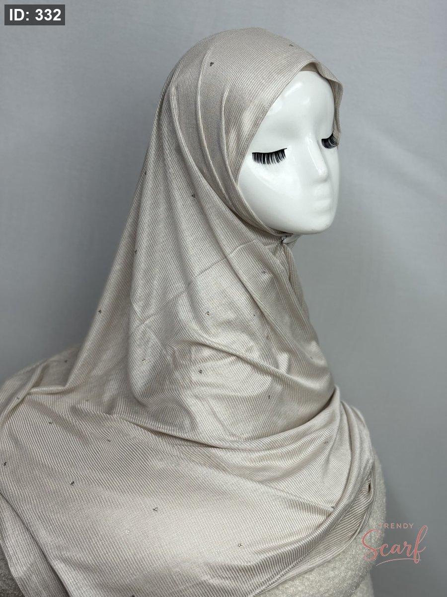 شال نصفين نصف شيفون سادة ونص لامع مع خرز