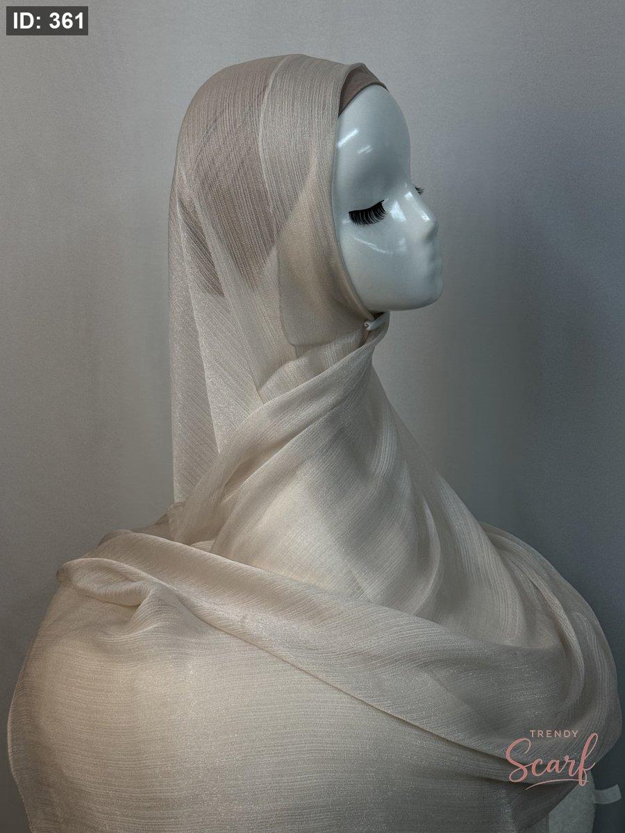 شال نصفين نصف شيفون سادة ونص لامع مع خرز