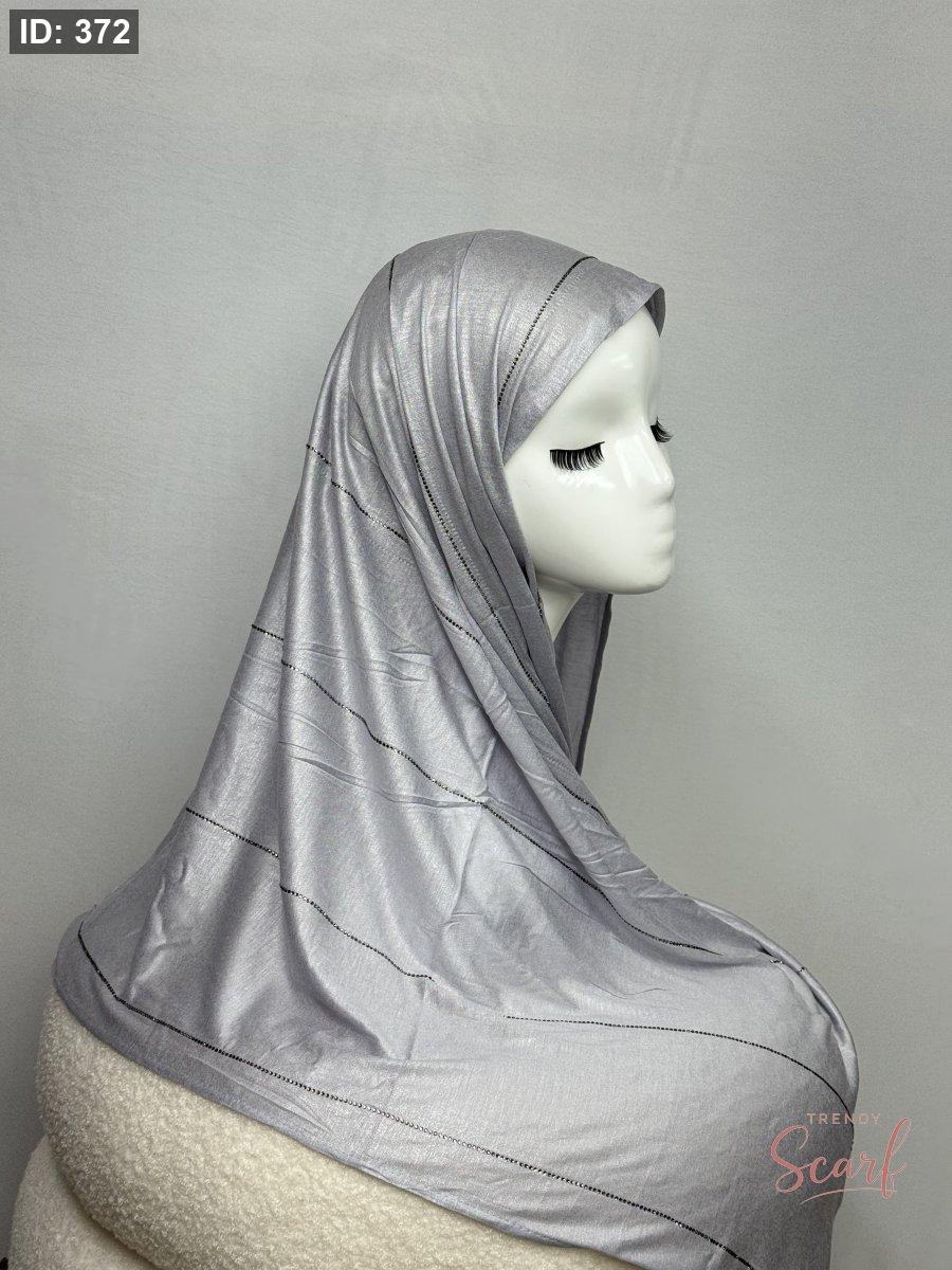 شال نصفين نصف شيفون سادة ونص لامع مع خرز