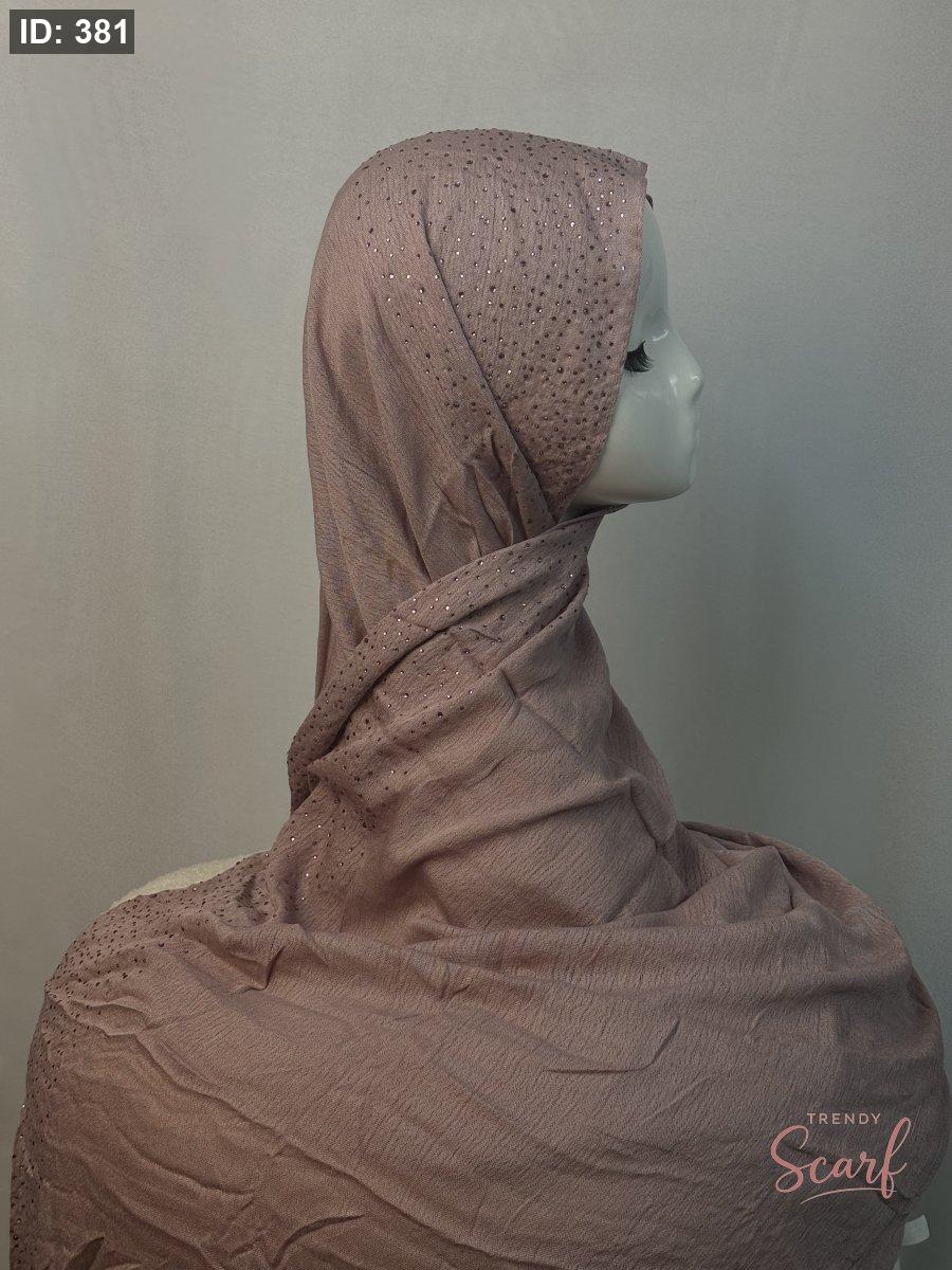 شال نصفين نصف شيفون سادة ونص لامع مع خرز