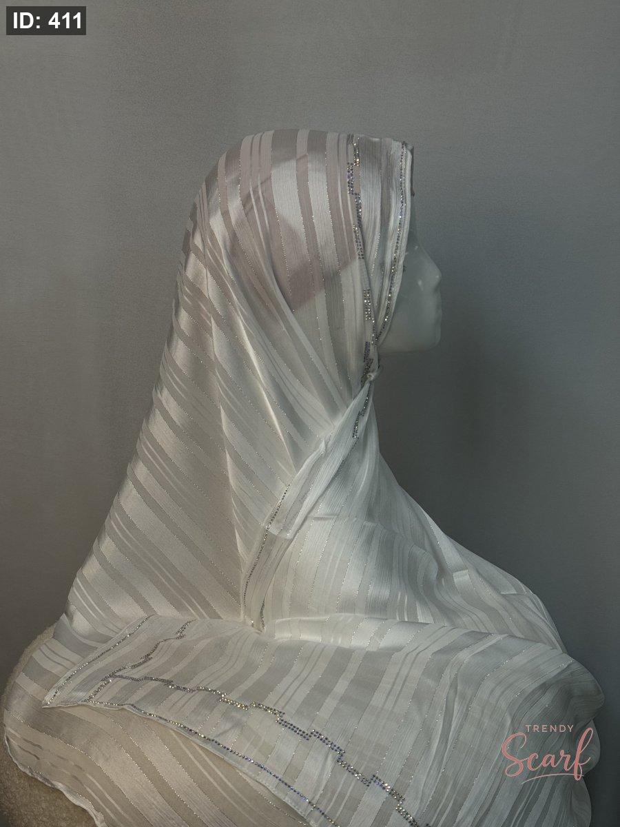 شال نصفين نصف شيفون سادة ونص لامع مع خرز