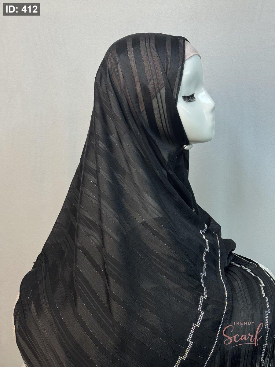 شال نصفين نصف شيفون سادة ونص لامع مع خرز