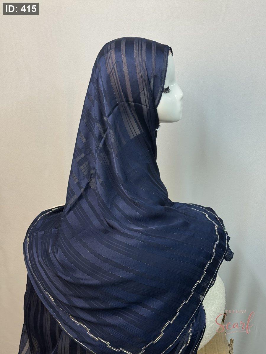 شال نصفين نصف شيفون سادة ونص لامع مع خرز