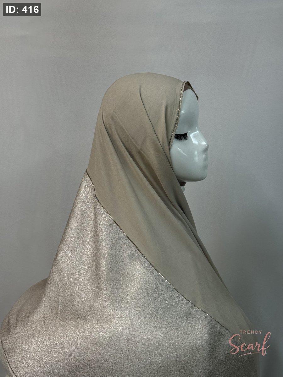 شال نصفين نصف شيفون سادة ونص لامع مع خرز