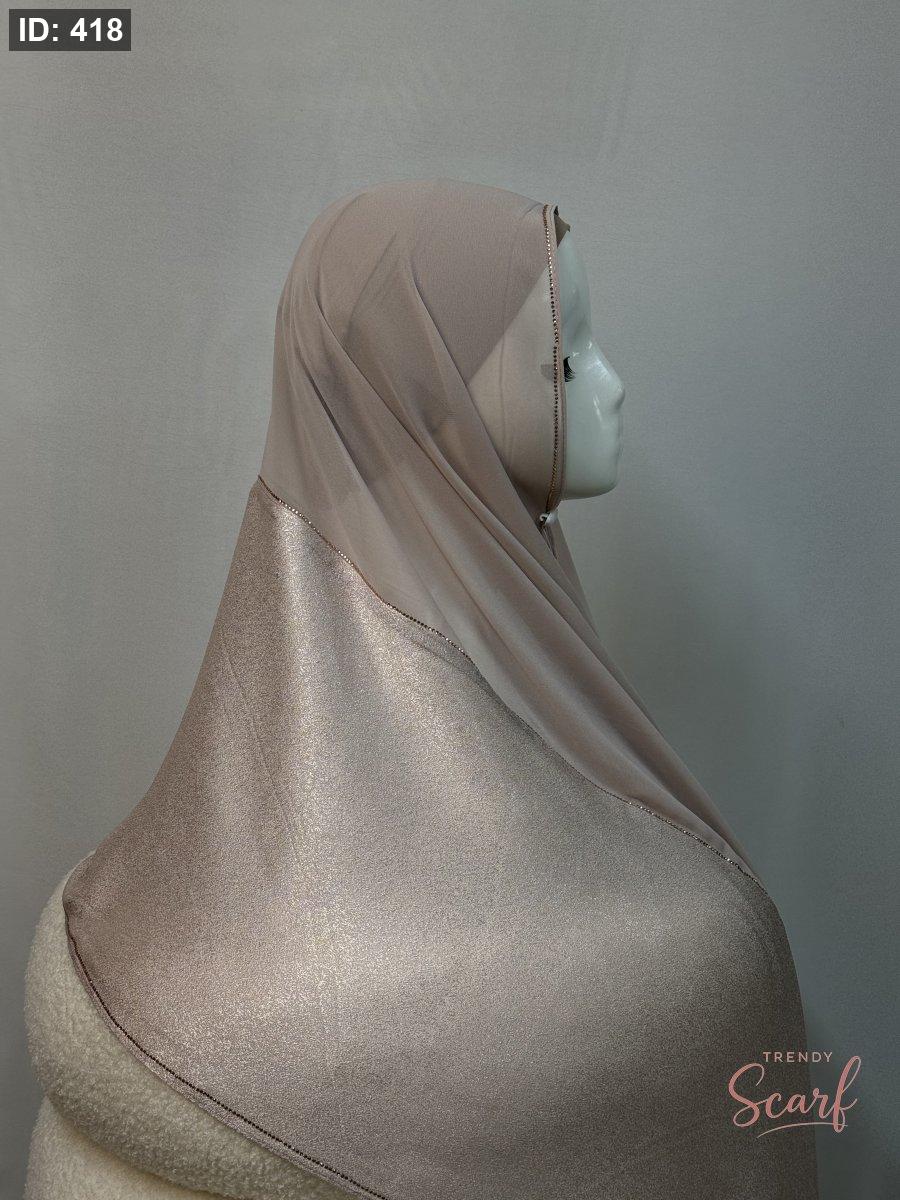 شال نصفين نصف شيفون سادة ونص لامع مع خرز