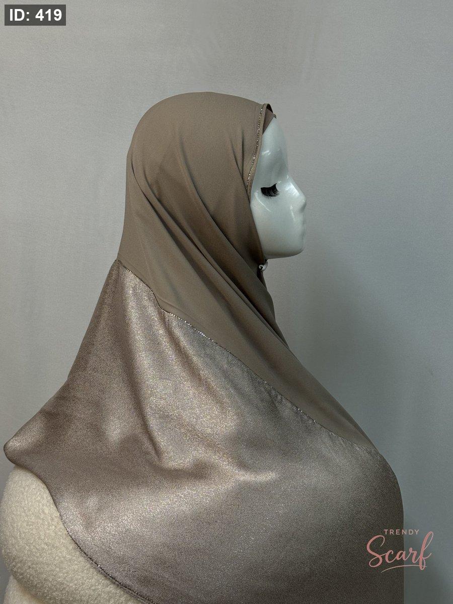 شال نصفين نصف شيفون سادة ونص لامع مع خرز