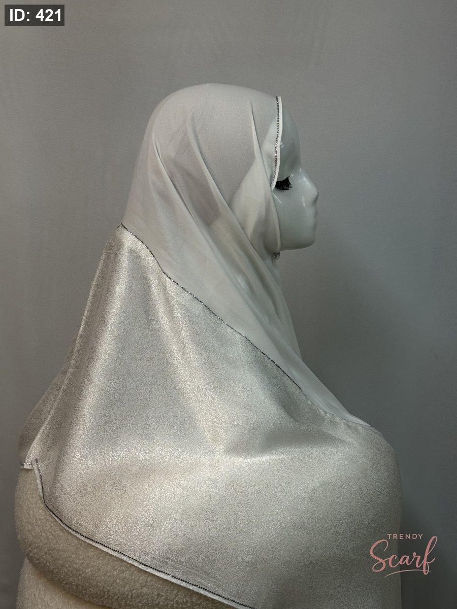 شال نصفين نصف شيفون سادة ونص لامع مع خرز